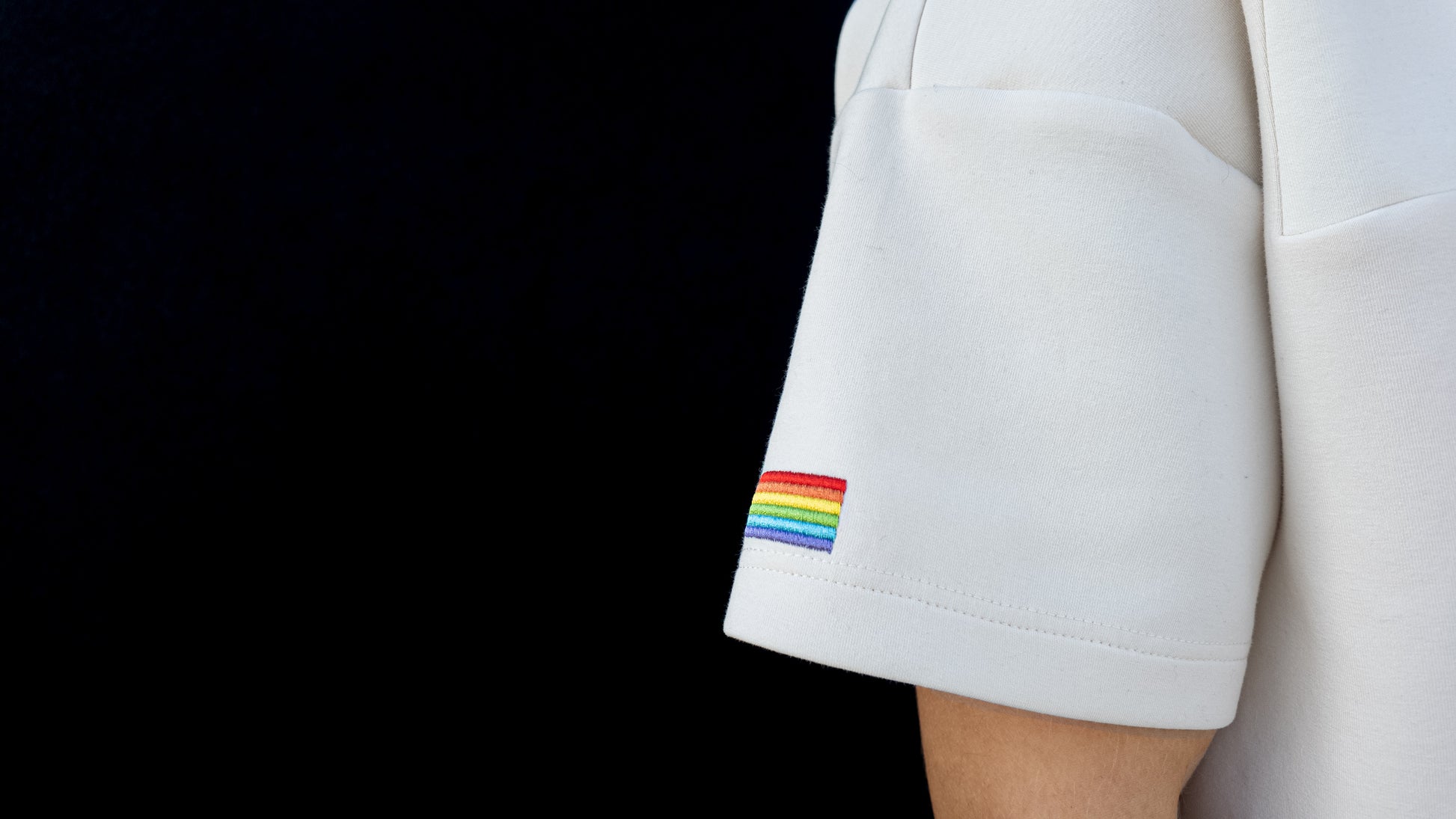 Pour ceux et celles qui souhaitent afficher leur fierté de manière subtile, nous proposons l’option du drapeau LGBTQ brodé sur la manche droite.